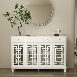 KULAGAGA Kitchen Buffet Sideboard with 3 Drawers and Carved Glass Door, 4-Door Accent Console Storage Cabine for Livng Room Dining Room, White$120Rancho Cucamonga, CA