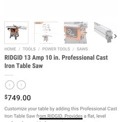 RIDGID 13 Amp 10 in. Professional Cast Iron Table Saw$250Twin Peaks, CA