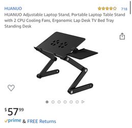 HUANUO Adjustable Laptop Stand, Portable Laptop Table Stand with 2 CPU Cooling Fans, Ergonomic Lap Desk TV Bed Tray Standing Desk$50Bloomington, CA