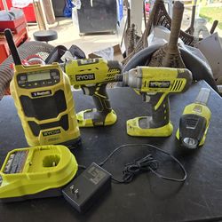 3 tools 18 volts RYOBI flash light bluetooth radio one battery and a charger$110Grand Terrace, CA