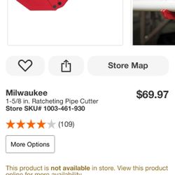 Milwaukee 1-5/8” Ratcheting Pipe Cutter / Like New$40Rialto, CA