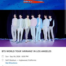BTS TOUR TICKETS LOS ANGELES (SUN SEP 6, 500 Section)$250Corona, CA