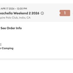 Coachella 2026 - Preferred Camping Pass (Weekend 1)$600Upland, CA