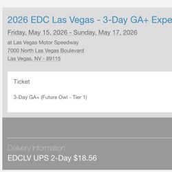 EDCLV TICKET $640Bloomington, CA