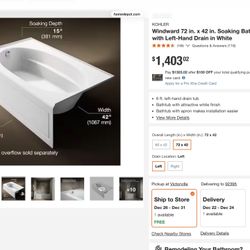 Hi everyone we this big tub beauteful new in box … this tub get one dent front bottom. That’s why we doing half price hurry this is good deal We l$700Apple Valley, CA