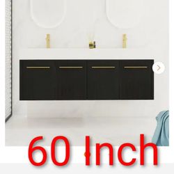 60 in. Double Sink Floating Black Bath Vanity with White Resin Top, Soft Closing Hinges, 4 Doors$580Chino, CA