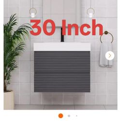 30 in. W Wall-Mounted Bath Vanity in Gray with White Solid Surface Top$100Chino, CA