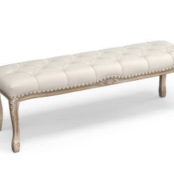 Bedroom Bench, French Vintage Tufted Entryway 52.5" Carving Upholstered End of Bed Bench with Distressed Wood Legs, Linen Ottoman Seat for Living Room$80Victorville, CA