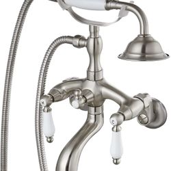 gotonovo Brushed Nickel Clawfoot Tub Faucet Wall Mount with Hand Held Shower Sprayer Bathtub Faucet Set Double Level Handle 6 Inch Center with Adapter$85Ontario, CA