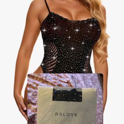 RSLOVE Women Lingerie Fishnet Teddy Bodysuit Sparkle Rhinestone Mesh Lingerie $10Riverside, CA