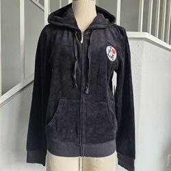 Juicy Couture Black Label Los Angeles Velour BLACK Hoodie Women's Size Lrg NWT $125Riverside, CA