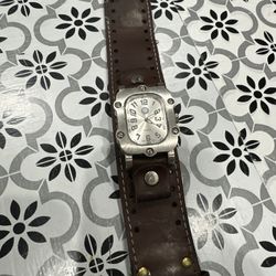 Men’s Silver Rugged Watch with Brown Leather Cuff! Needs New Battery $45Perris, CA