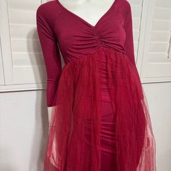 New Medium long sleeves red tulle stretchy dress gown photo$15Mount Baldy, CA