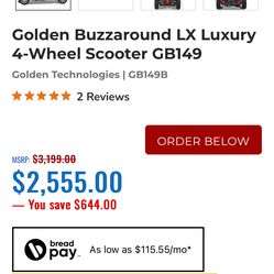 Golden Buzzaround Lx Luxury 4-Wheel Scooter GB149$2,450Moreno Valley, CA