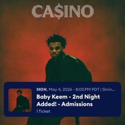 BABY KEEM CASINO TOUR TICKET$60Riverside, CA