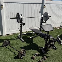 Weight bench with ez curl bar and adjustable dumbbells$170Menifee, CA