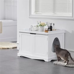 2 Doors Pet Litter Box Wooden Storage Bench Side Table End Table for Pets Cat Dog, White$65Fontana, CA