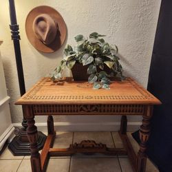 Antique Wood Carved Table With Glass Top$35Oak Glen, CA