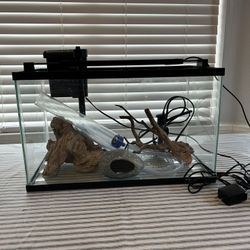 Full Fish Tank Setup With 10 Gallon Tank, Filter, Heater, Rock Formations, Driftwood, And Fluval Smart Light $90Apple Valley, CA