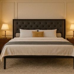 King Bed Metal Platform Bed Frame,Linen Upholstered Button Tufted Headboard, Mattress Foundation with 12.4” Under-Bed Storage, Noise-Free, Easy Assem$95Fontana, CA