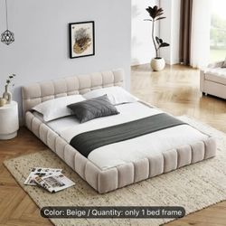 King Size Platform Bed Frame with Fabric Upholstered Headboard and Wooden Slats Support, Fully Upholstered Mattress Foundation/No Box Spring Needed/Ea$150Ontario, CA