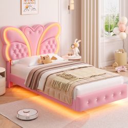 Twin Size Floating LED Bed with Butterfly Headboard,Velvet Button Tufted Upholstered Platform Bed Frame$120Ontario, CA