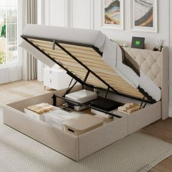 King Size Bed Frame with Lift Up Storage & Charging Station, Button Tufted Wingback Upholstered Headboard, Wooden Slats Support, No Box Spring Needed,$180Rancho Cucamonga, CA