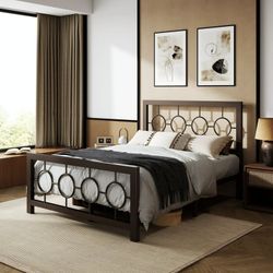 Sifurni Full Size Metal Platform Bed Frame with Modern and Vintage Headboard and Footboard, Brown$95Ontario, CA