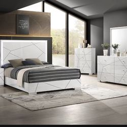 Brand New Elegant Style Symmetrical Lined High Gloss Queen Bedroom Set $1,499Rancho Cucamonga, CA