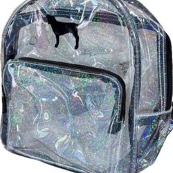 New Victoria’s Secret Pink GLITTER Clear Iridescent MINI Backpack School Black Logo$40Perris, CA