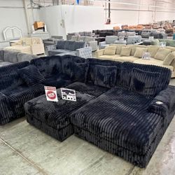 New! Jumbo Corduroy Sectional, Black Corduroy Sectional, Plush Sectional, Soft Corduroy Couch, Black couch, Black Sofa, Black Sectional And Ottoman$529Corona, CA
