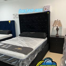 Velvet Queen Bed Frame With Diamond Headboard Set New $2,888Chino, CA