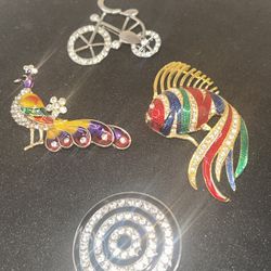 Bling Brooch Lot 4 Costume Jewelry Fish Swirl Peacock Bicycle 2New 2 Preowned$19Hesperia, CA