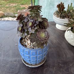 Ceramic Pots with Pink Aeonium Crested and Cluster $140Claremont, CA