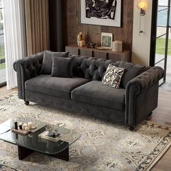 82 Inch Chesterfield Sofa, 23 Inch Deep Seat Velvet Couch for Living Room, Button Tufted Couch with Rolled Arms, 2 Throw Pillows, Comfy Vintage Lovese$299Jurupa Valley, CA