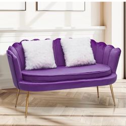 52" Purple Velvet Loveseat Sofa with 2 Pillows, Modern 2-Seater Sofa Upholstered Tufted Love Seat Couch with Golden Metal Legs for Living Room Confere$180Ontario, CA