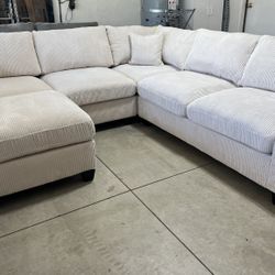 New! Plush sectional sofa set, sectional and ottoman. Sofa, couch, gray sectional and ottoman, corduroy soft pillow sectional, sectionals. Dimensions $449Chino, CA