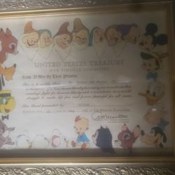 Vintage Disney 1945 United States Treasury Disney Characters Certificate War Bond.$80Upland, CA