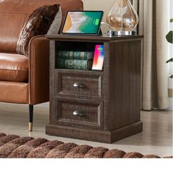 Brown Rustic Nightstand With Charging Station $50Chino, CA