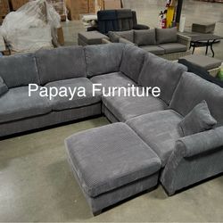 New! Plush Dark Grey Sectional And Ottoman, Sectionals, Sofa, Grey Couch, Grey Sectionals, Plush Sofa,L-Shaped Sofa, Corduroy Sectional, Deep Seating$479Chino, CA