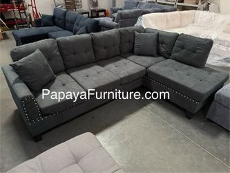 NEW Dark Grey Fabric Sectional Sofa and Chaise Lounge Set with FREE STORAGE OTTOMAN Ashley Style Discount BIG Modern Couch Clearance SALE Many Colors$479San Bernardino, CA