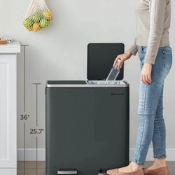 16 GallonStainless Steel Trash Can, 60L Dual Compartment, Metal Kitchen Step Recycle Bin, Metal Double Dustbin, in-Home Garbage Rubbish Can $60Ontario, CA