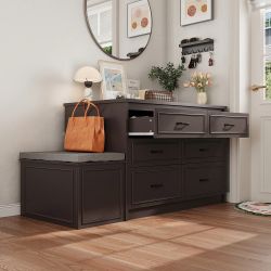 61.9" W Closet Island with Storage Bench & 12 Drawers, Modern Wooden Armoire Wardrobe Dresser Island for Bedroom Walk-in Closet, Black Brown$180Upland, CA
