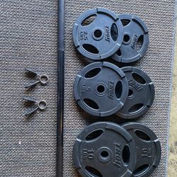 Olympic curling bar/ CAP 50 lb Olympic Weight Plate Set (4)10 lb & (2) 5 lb Plates$159Riverside, CA