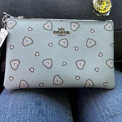Coach Wristlet With Western Heart Print Light Turquoise Blue # 29667$58Fontana, CA