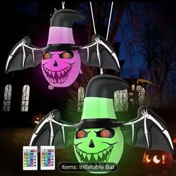 [Halloween Bat] 4ft Inflatable Bat Decoration with Black Wings, Glowing Red Eyes & Skull Face | High Quality PVC Outdoor Yard Decor, Self-Standing & H$18Montclair, CA