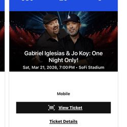 Gabriel Iglesias & Jo Koy Tickets!$230Long Beach, CA