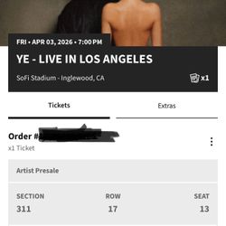 YE / Kanye Tickets$300Los Angeles, CA