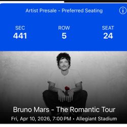 Bruno Mars The Romantic Tour Tickets$220Cypress, CA