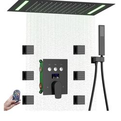 Bathroom shower system Ceiling 14x20 inch shower head, spray with handle, 6 PCS Body Jet and Handheld, temperature display shower faucet set (Matte Bl$350Phillips Ranch, CA